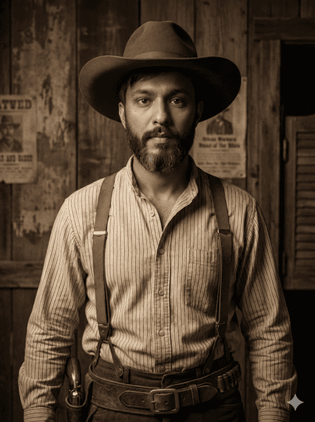 Old School Wild West AI Portrait Prompt (1800s Cowboy Photo Style)