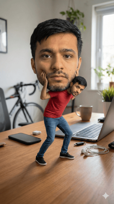 Surreal Forced-Perspective Photo Gemini Prompt – Miniature Man Carrying Oversized Calm Head Illusion